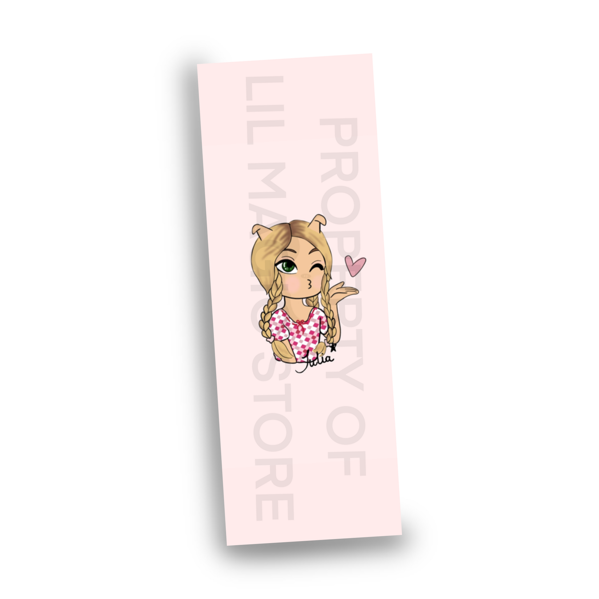 - they're standard bookmark size, found on google, so they're a tad bit smaller than a normal bookmark we're used too. (once we get with books, they're bigger) mine are about 2 x 6 inches!