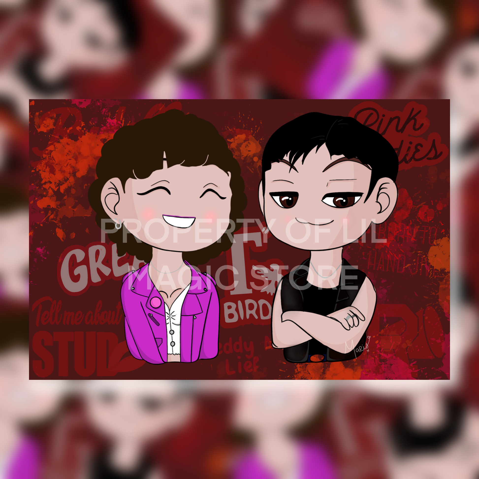 Our rendition of the Dutch cast of Grease, Jonathan Vroege as Kenickie & Esmeé Dekker as Rizzo. We made this art print to include in our advent calendars and now it’s here to stay! We absolutely love this print so much and didn’t want to keep it from you anymore!