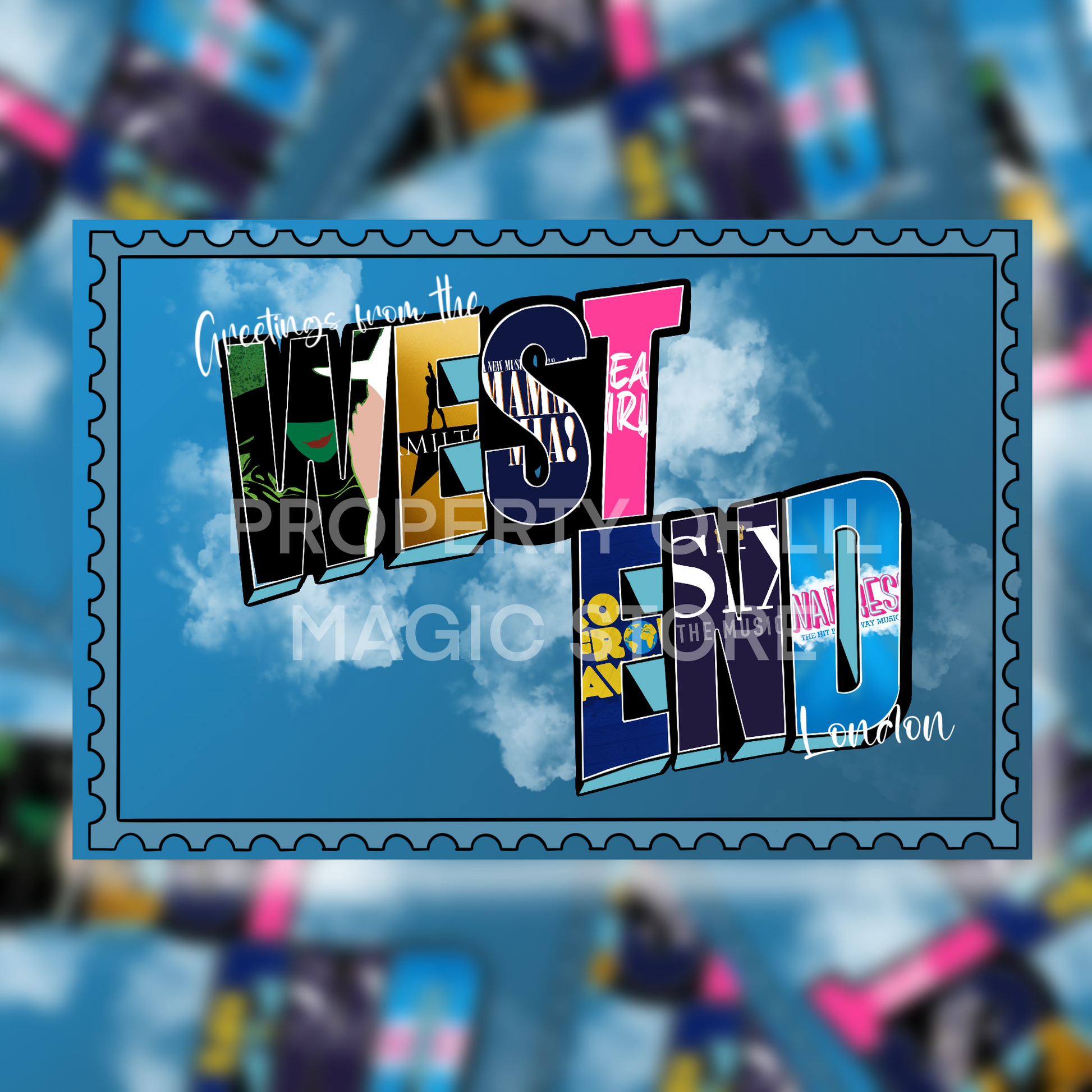 For the Advent Calendars we decided to create a few postcards, the west end postcard is one of them. Showcasing iconic shows that are popular on the West End in London right now.