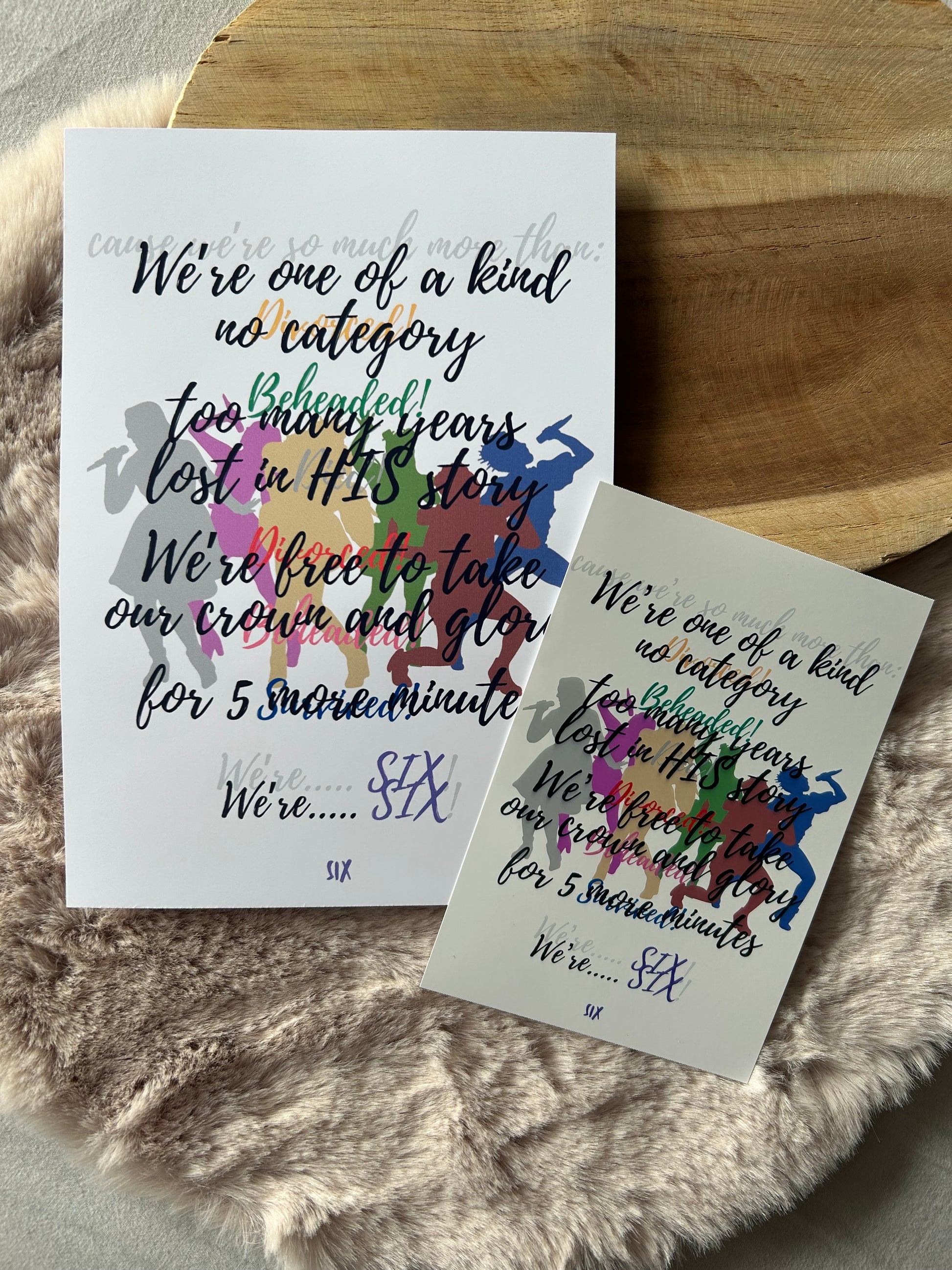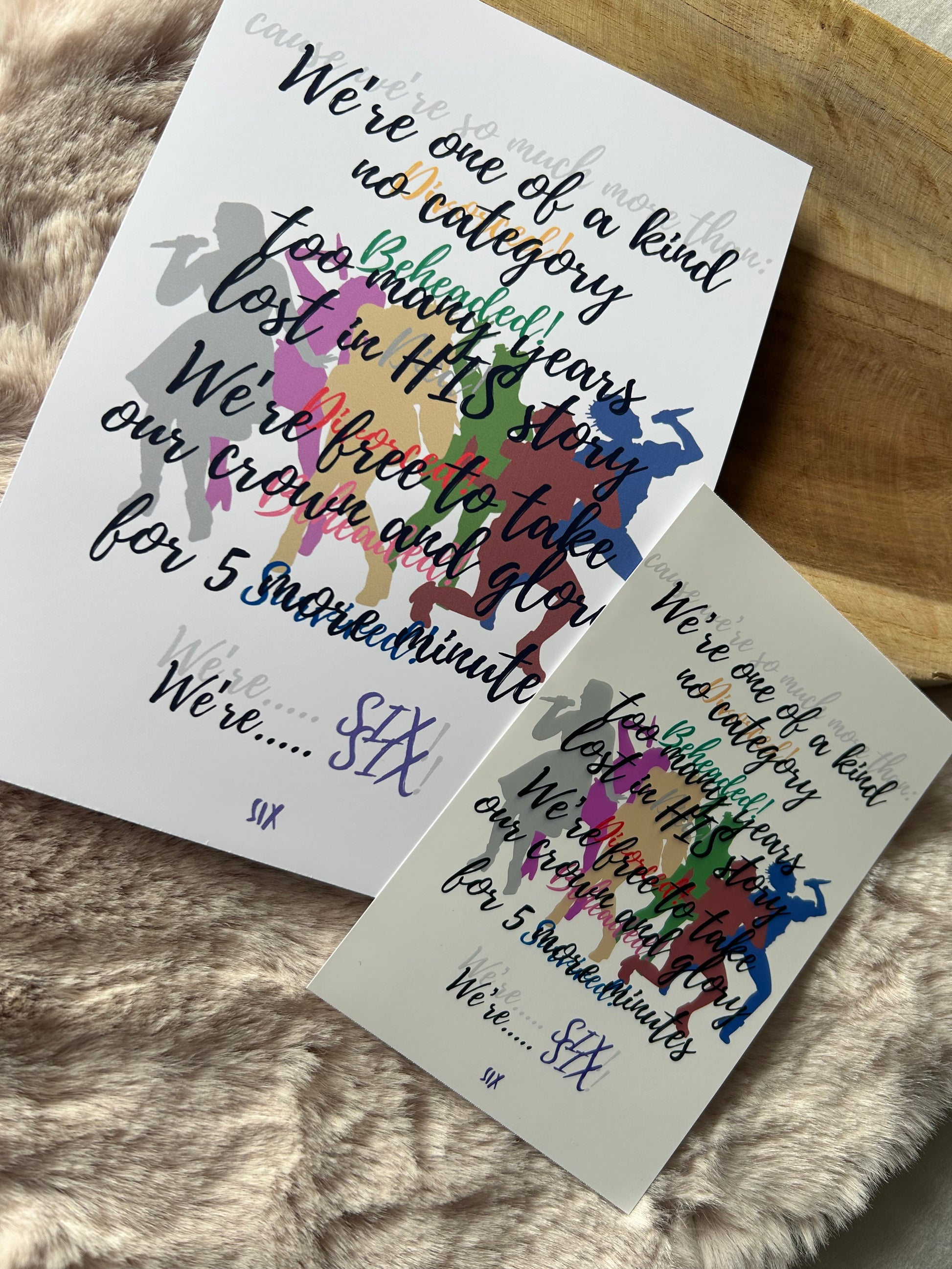 SIX is a new British musical, It is a modern retelling of the lives of the six wives of Henry VIII, presented in the form of a singing competition/pop concert. In the show, the wives take turns telling their stories to determine who suffered the most from their shared husband, but ultimately seek to reclaim their individual identities and rewrite their stories.