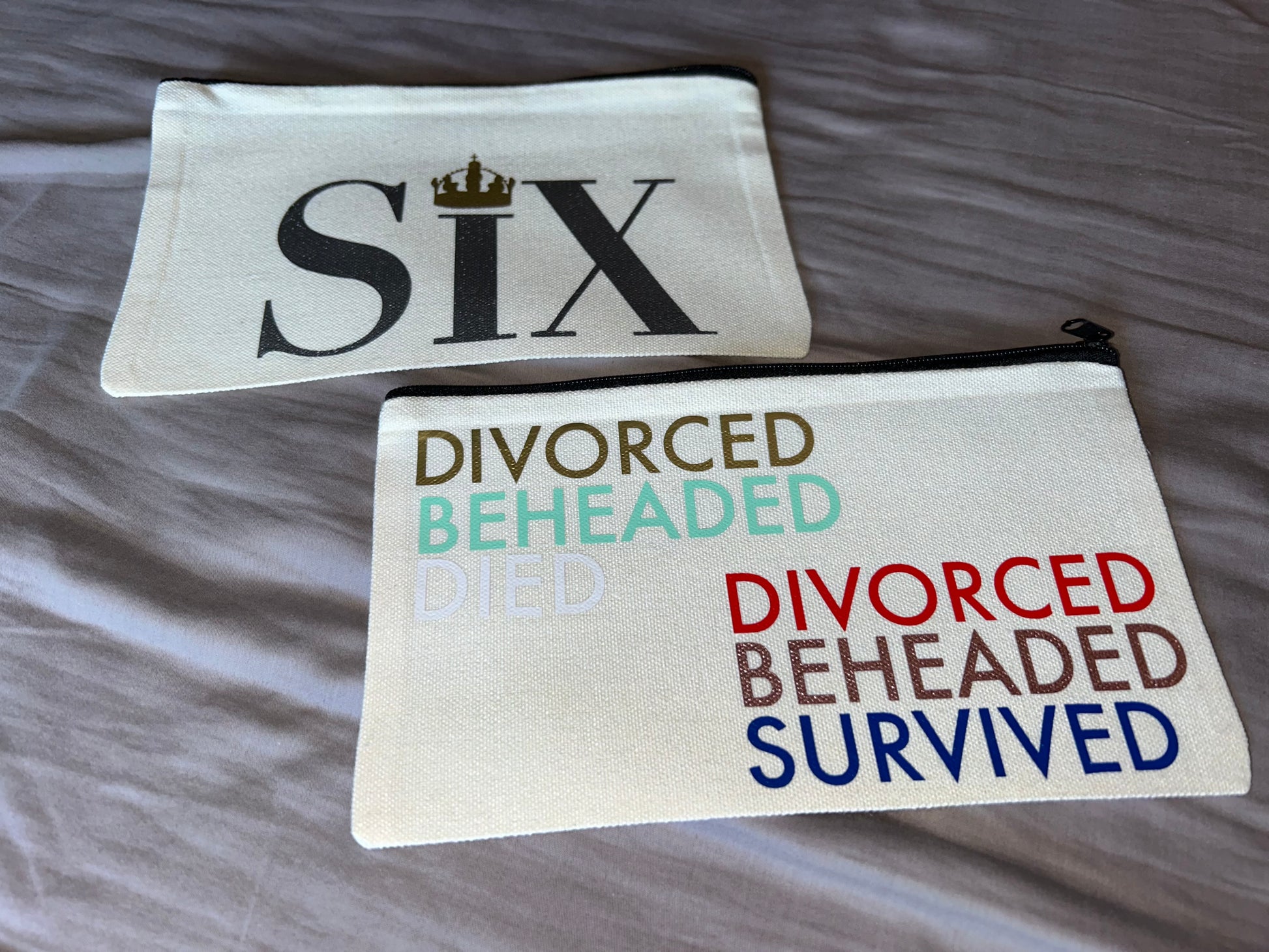 With the SIX the Musical Pencil Pouch you'll be stealing the show when you're going #BackToSchool ! It's a fun Pouch with a zipper that can be used for everyday life, not just as a Pencil Pouch - we just had to give her a name! You can use it as a Make-Up bag, a Toiletry Bag, Wallet - you can use it for anything!