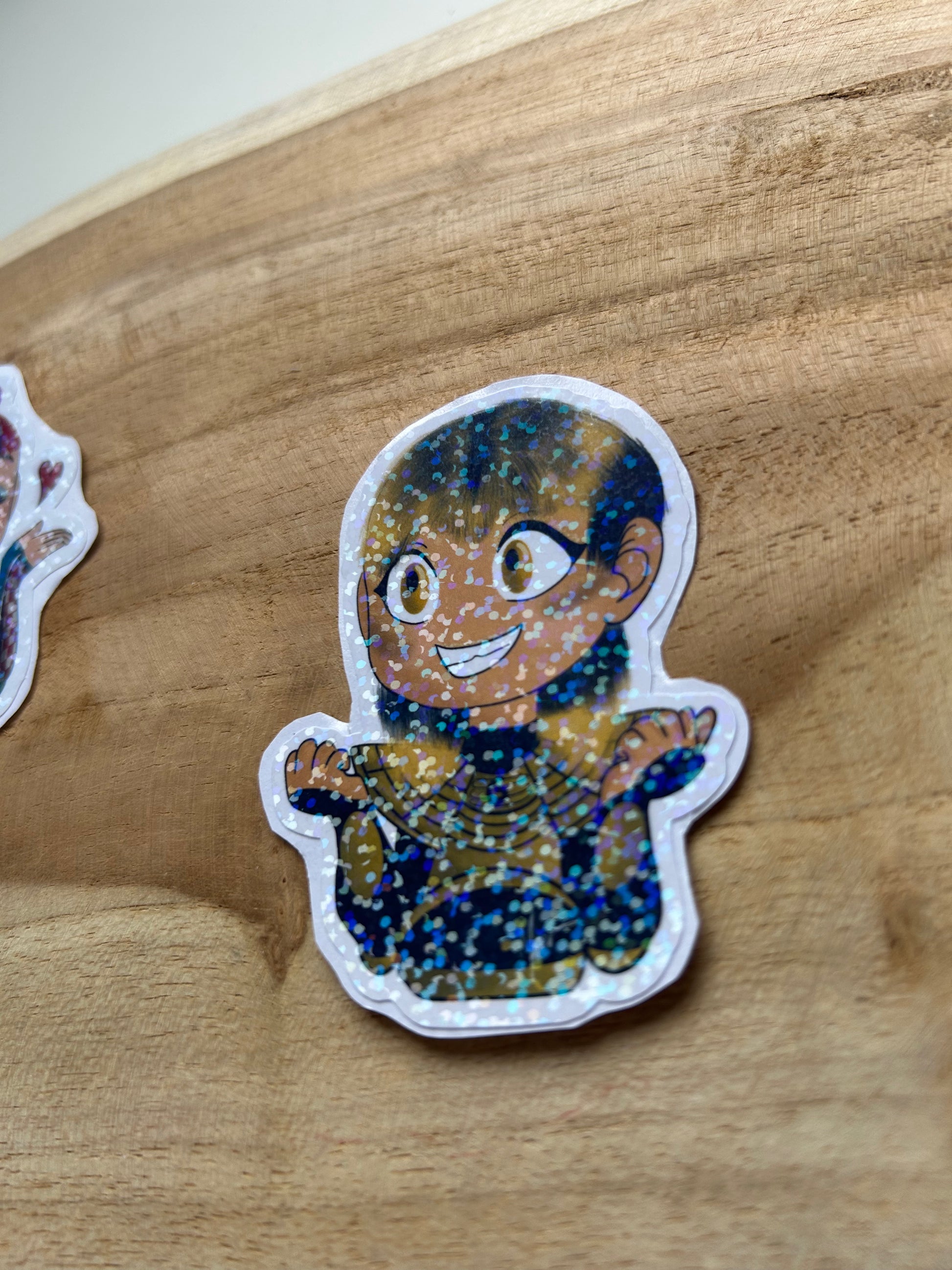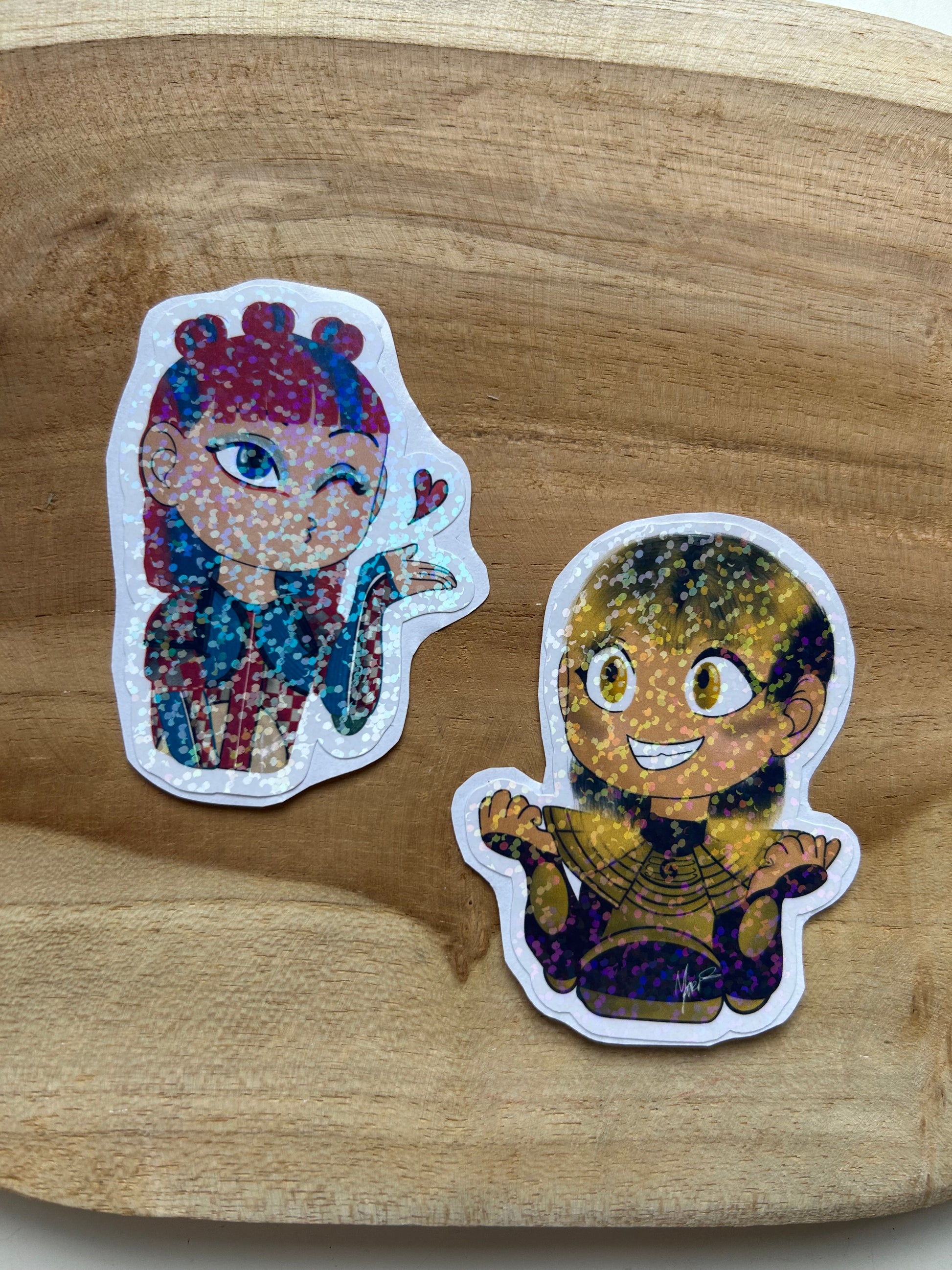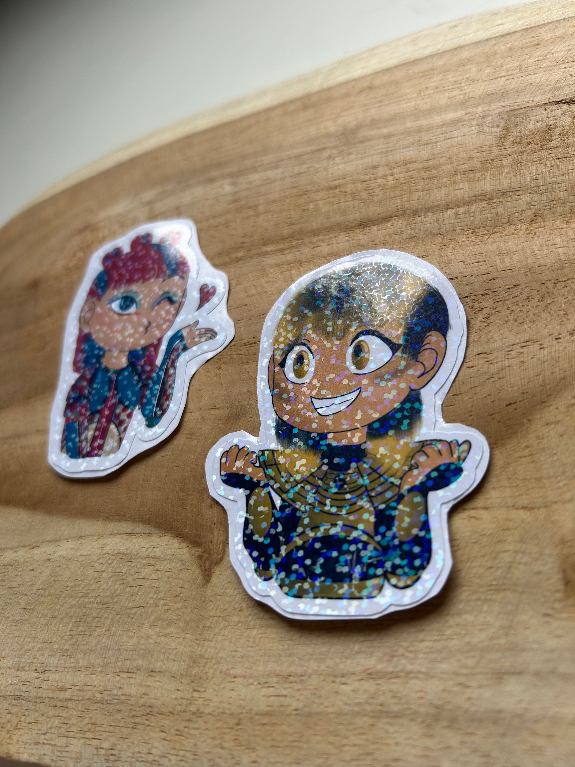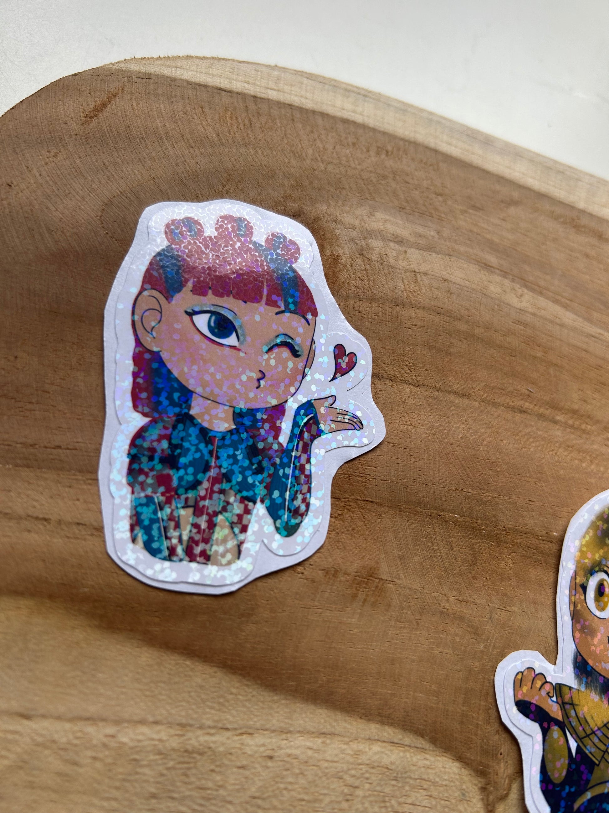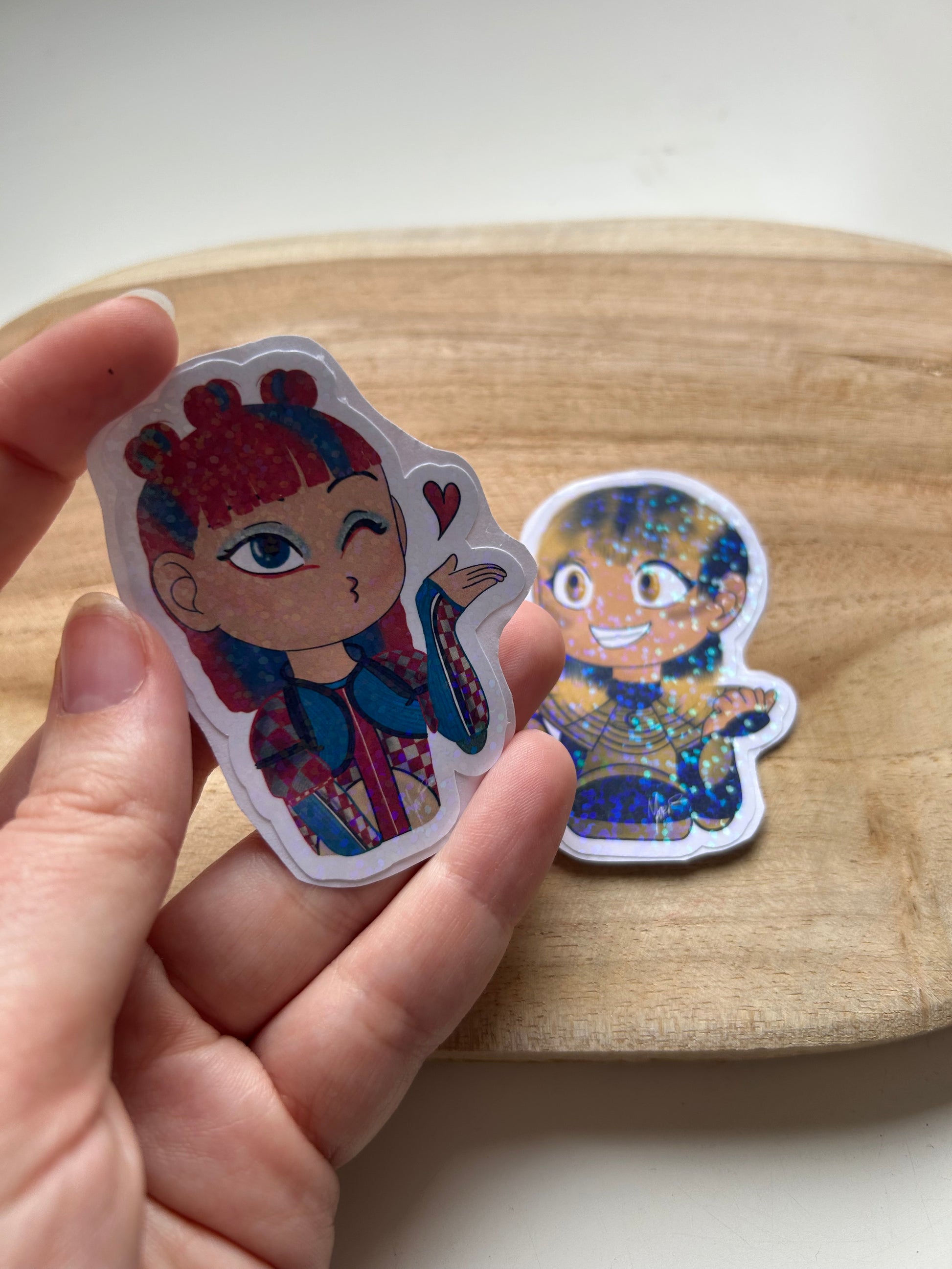 The stickers are laminated with a holographic laminate to make them last longer. The stickers can be used in any way, in your Journal or maybe on the back of your laptop. And with the easy-peel backing there is no more bending the sticker to get it off the backing! The sticker is about 6.5cm tall, the width will differ for each sticker due to the pose of the character