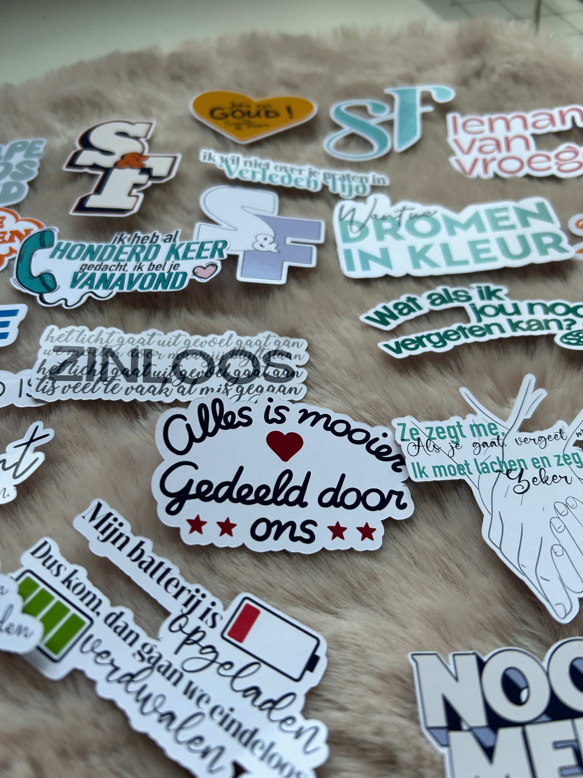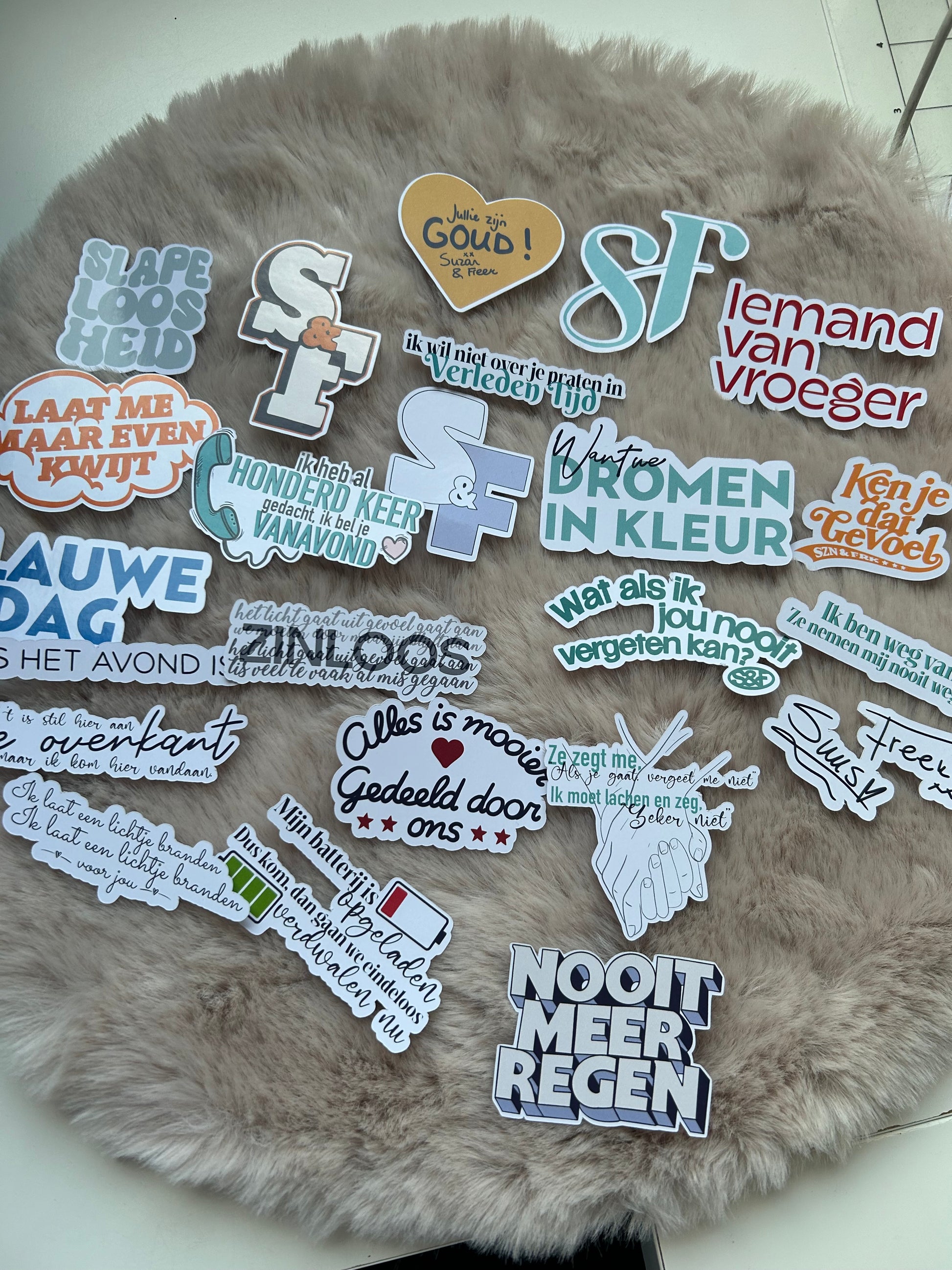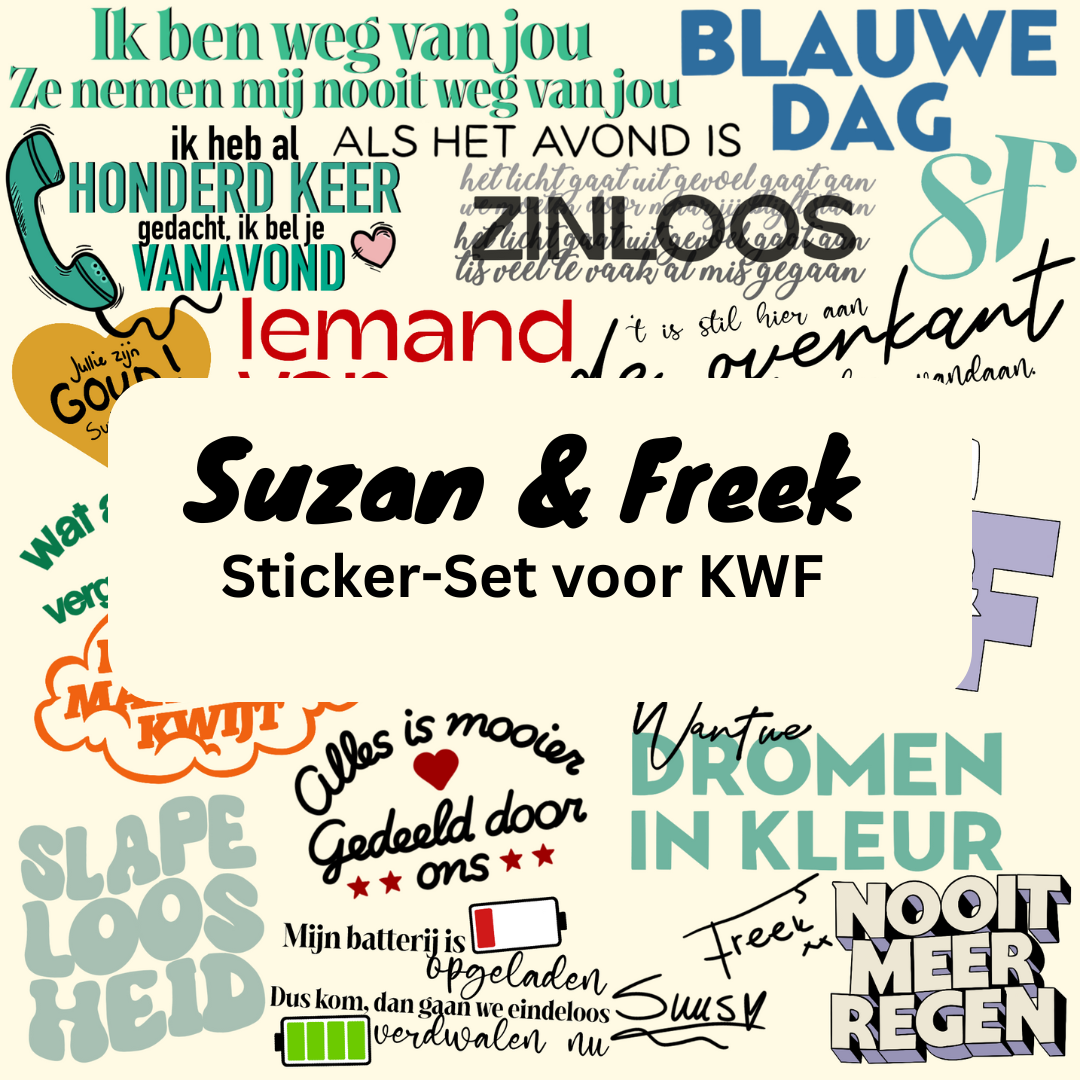 Na het nieuws van Freek hebben we besloten de Suzan & Freek collectie die we klaar hadden staan iets aan te passen om vervolgens wel te uploaden. De collectie bestaat uit een aantal producten: Sleutelhangers, Stickers & Buttons. Je kijkt nu naar de STICKER-SET uit de collectie. Dat betekend dat deze set ALLE 23 stickers bevat - tegen een gereduceerde prijs !