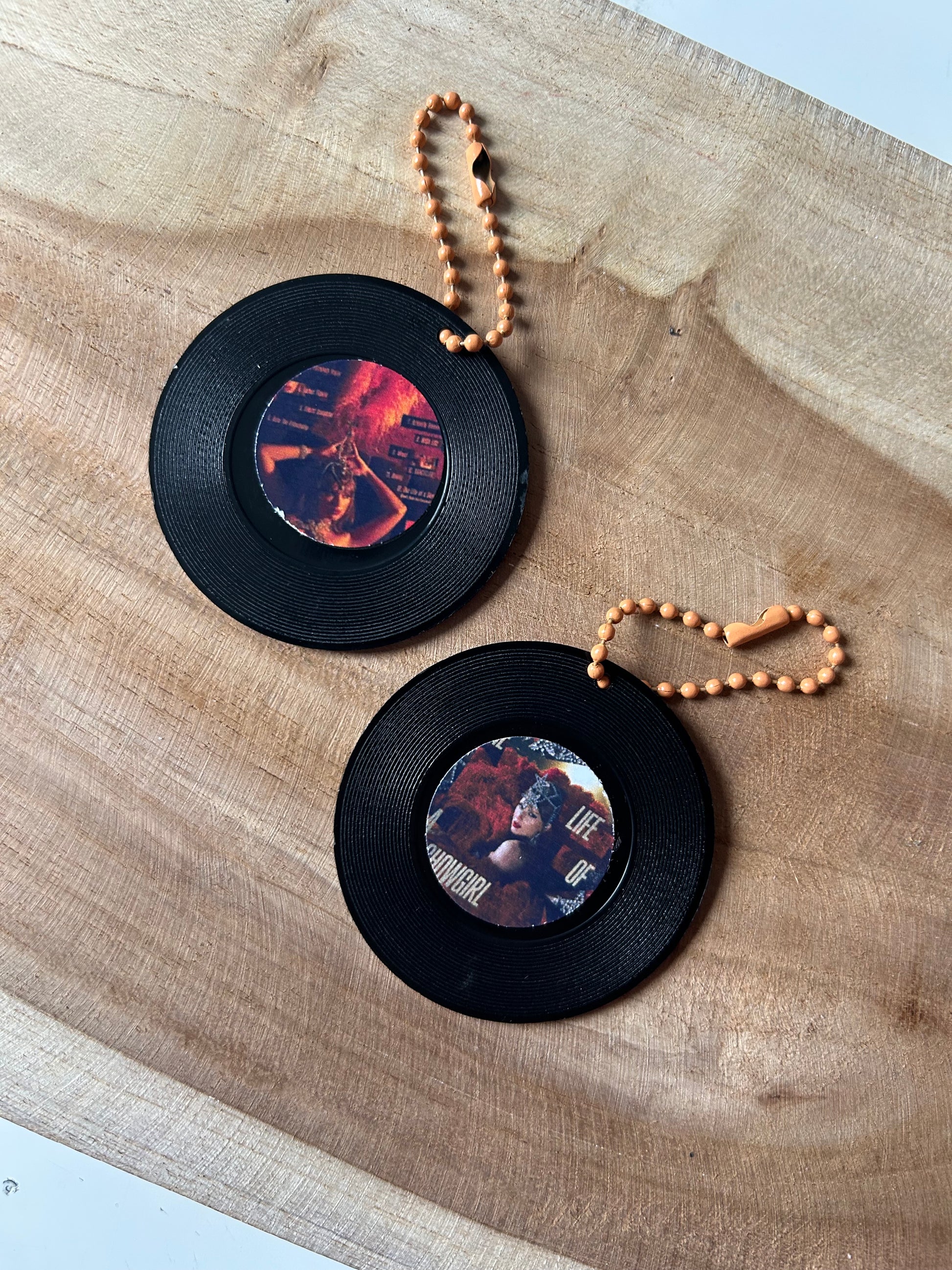 Taylor Swift's new album, Life of a Showgirl now on mini Vinyl Record Keychain! In 2 variants: the original green cover and a dark cover, one for everyone!