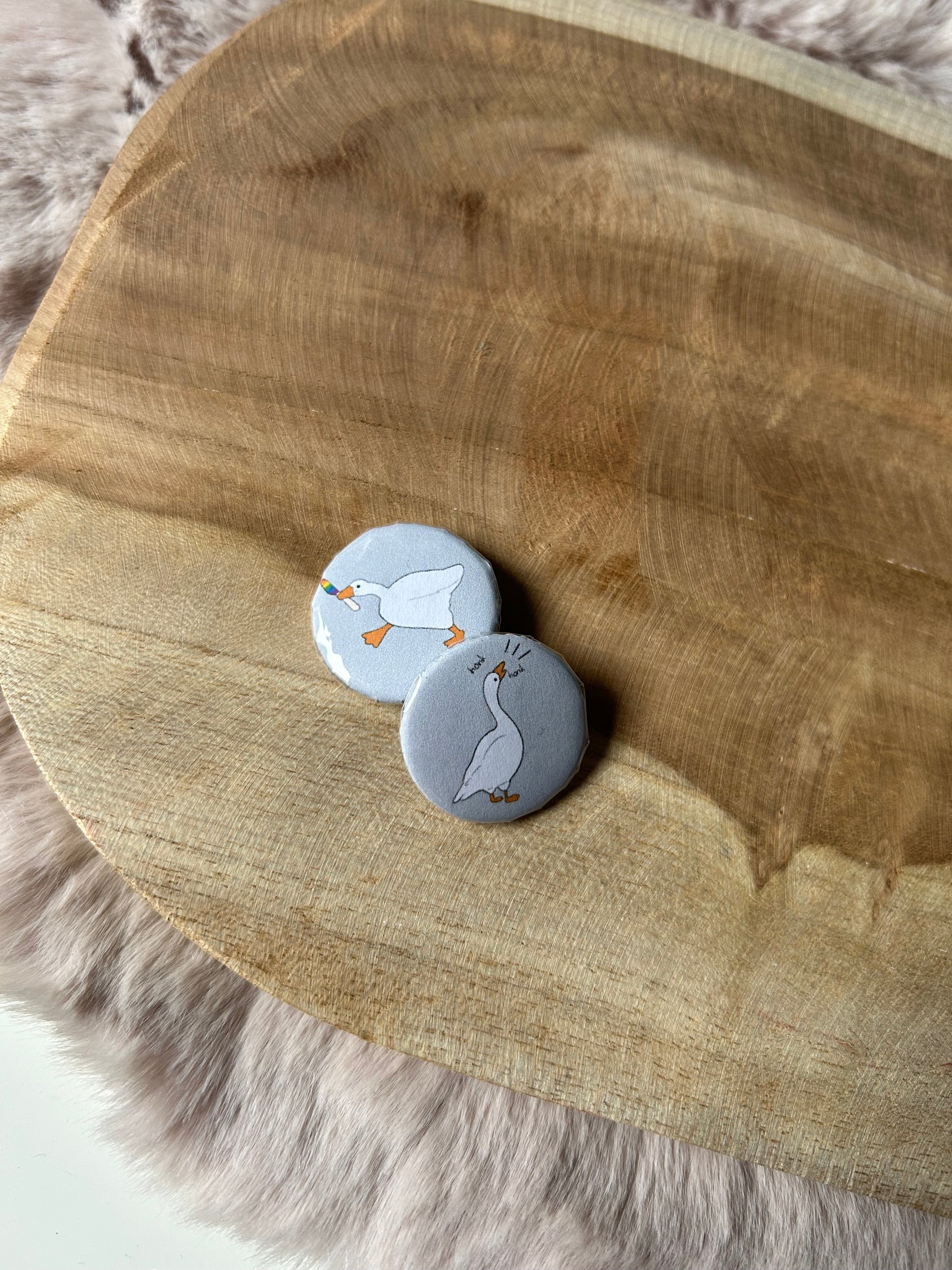It's everyone's favorite goose, and a very gay goose ! Get your Goosing on with our Untitled Goose Game Buttons!