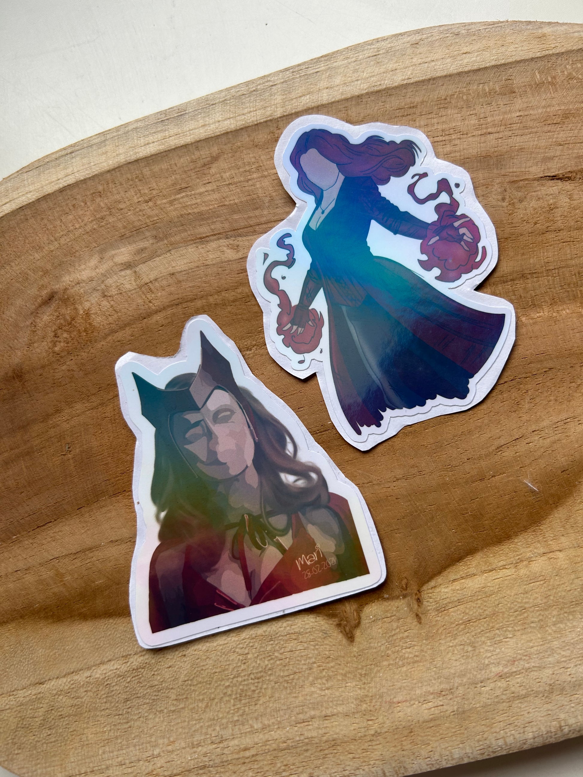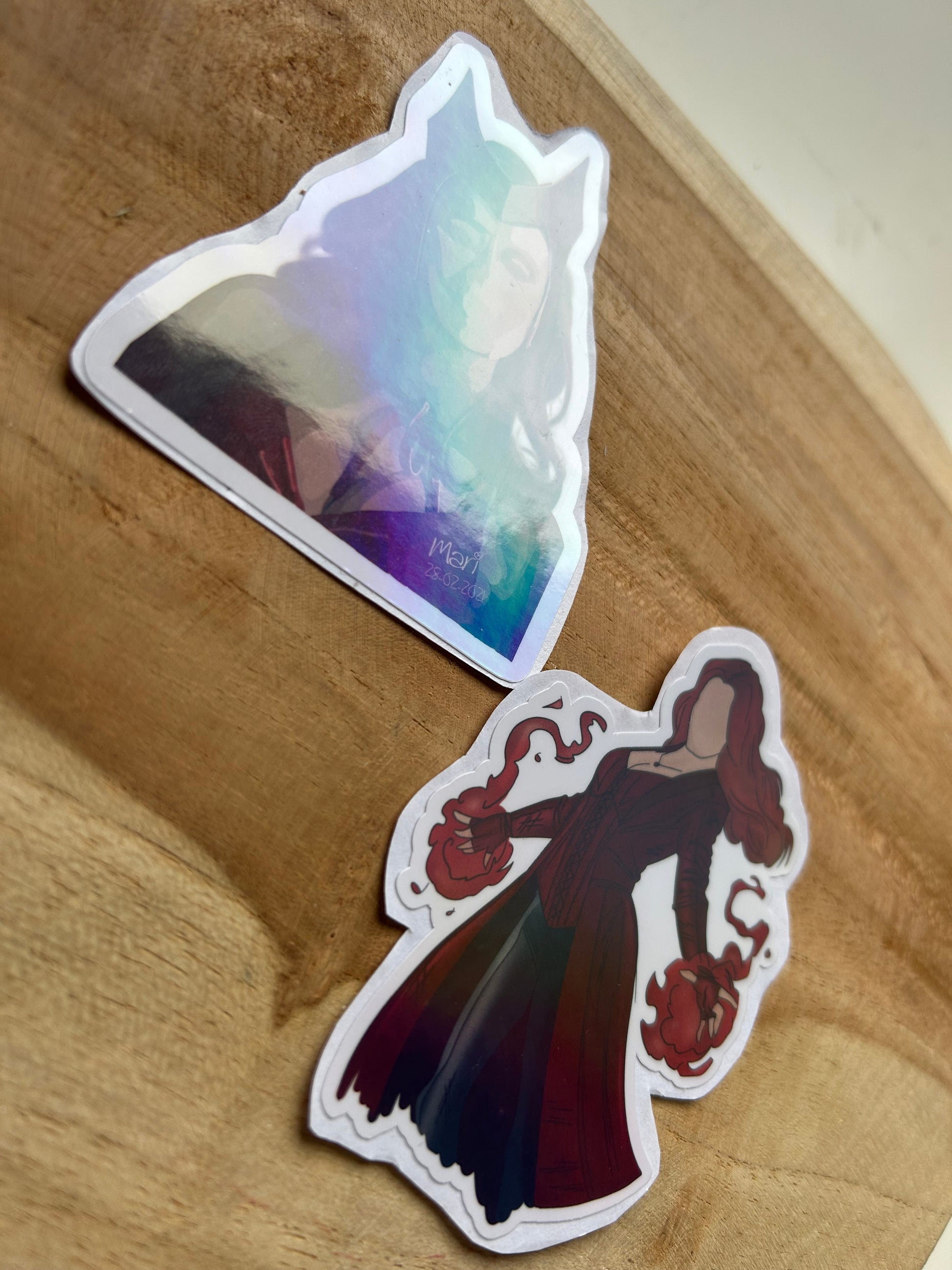 The Scarlet Witch, Wanda Maximoff from the MCU - our favorite girl besides Black Widow / Natasha Romanoff. We have had these designs in Prints and Bookmarks a little back in the day and decided we would turn these into stickers, and they turned out so freaking cute!